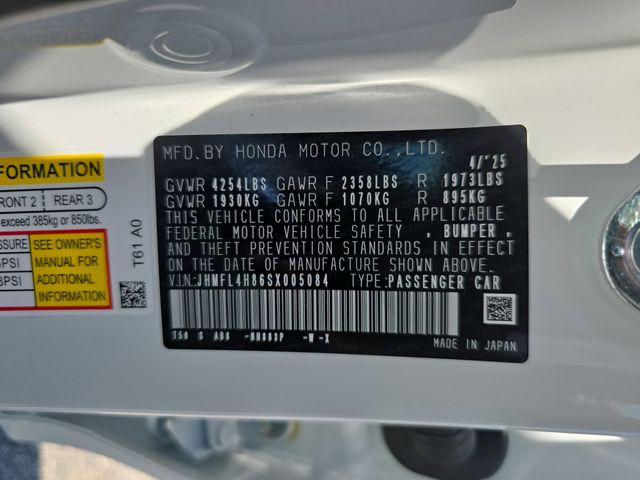 Platinum White Pearl 2025 Honda Civic Hybrid Sport FWD eCVT 2.0L I4 DOHC 16V