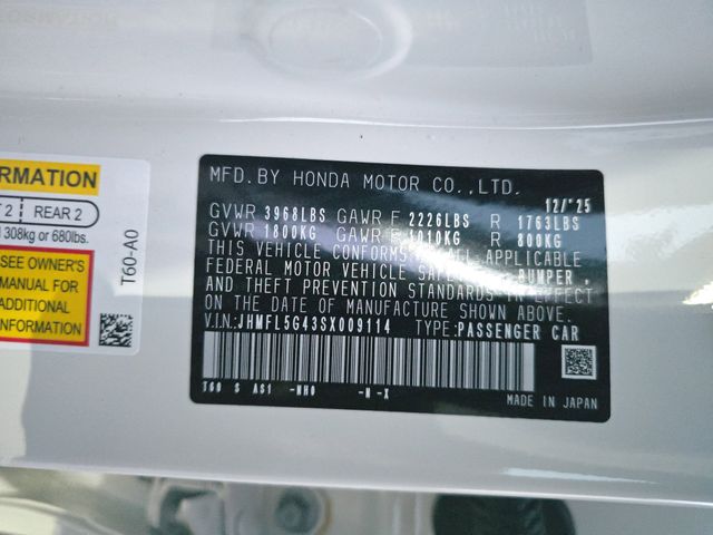 Championship White 2025 Honda Civic Type R FWD 6-Speed Manual 2.0L I4 Turbocharged DOHC 16V LEV3-ULEV50 315hp
