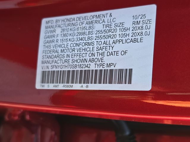 AWD, 12 Speakers, 3rd row seats: split-bench, 4-Wheel Disc Brakes, 4.167 Axle Ratio, ABS brakes, Adaptive Cruise Control: Adaptive Cruise Control (ACC) with Low-Speed Follow, Air Conditioning, Alloy wheels, AM/FM radio: SiriusXM, Apple CarPlay/Android Auto, Auto High-beam Headlights, Auto-dimming Rear-View mirror, Automatic temperature control, Blind Spot Information (BSI) System warning, Bose Premium Sound System, Brake assist, Bumpers: body-color, Compass, Delay-off headlights, Driver door bin, Driver vanity mirror, Dual front impact airbags, Dual front side impact airbags, Electronic Stability Control, Emergency communication system: HondaLink, Exterior Parking Camera Rear, Four wheel independent suspension, Front anti-roll bar, Front Bucket Seats, Front Center Armrest, Front dual zone A/C, Front fog lights, Front reading lights, Fully automatic headlights, Garage door transmitter: HomeLink, Heated door mirrors, Heated Front Bucket Seats, Heated front seats, Honda Satellite-Linked Navigation System, HondaLink Subscription Services, Illuminated entry, Knee airbag, Lane departure: Lane Keeping Assist System (LKAS) active, Leather Seat Trim, Low tire pressure warning, Memory seat, Navigation system: Honda Satellite-Linked Navigation System, Occupant sensing airbag, Outside temperature display, Overhead airbag, Overhead console, Panic alarm, Passenger door bin, Passenger vanity mirror, Power door mirrors, Power driver seat, Power Liftgate, Power moonroof, Power passenger seat, Power steering, Power windows, Radio data system, Rear air conditioning, Rear anti-roll bar, Rear reading lights, Rear seat center armrest, Rear window defroster, Rear window wiper, Reclining 3rd row seat, Remote keyless entry, Security system, SiriusXM, Speed control, Speed-sensing steering, Speed-Sensitive Wipers, Split folding rear seat, Spoiler, Steering wheel mounted audio controls, Tachometer, Telescoping steering wheel, Tilt steering wheel, Traction control, Trip computer, Turn signal indicator mirrors, Variably intermittent wipers, Wheels: 20" Shark Gray Machine Face w/Blk Lug Nuts, AWD.