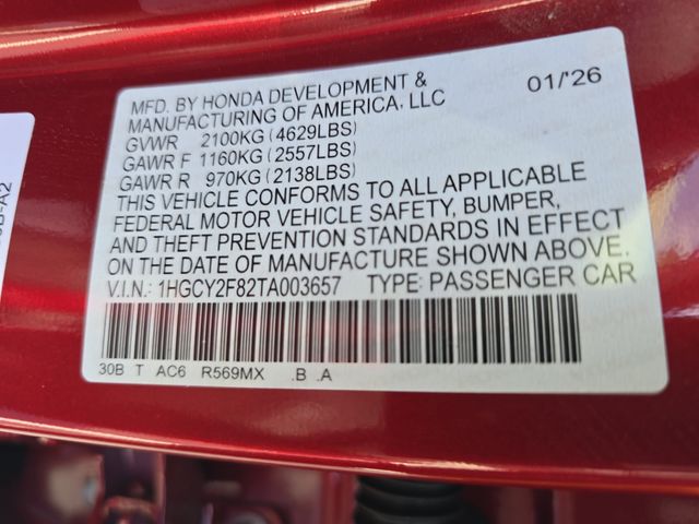 2.0L I4 DOHC 16V, 12 Speakers, 4-Wheel Disc Brakes, ABS brakes, Adaptive Cruise Control: Adaptive Cruise Control (ACC) with Low-Speed Follow, Air Conditioning, Alloy wheels, AM/FM radio, Apple CarPlay/Android Auto, Auto High-beam Headlights, Auto-dimming Rear-View mirror, Automatic temperature control, Blind Spot Information (BSI) System warning, Bose Premium Sound System, Brake assist, Bumpers: body-color, Compass, Delay-off headlights, Driver door bin, Driver vanity mirror, Dual front impact airbags, Dual front side impact airbags, Electronic Stability Control, Emergency communication system: HondaLink, Exterior Parking Camera Rear, Four wheel independent suspension, Front anti-roll bar, Front Bucket Seats, Front Center Armrest, Front dual zone A/C, Front reading lights, Fully automatic headlights, Heads-Up Display, Heated and Ventilated Front Bucket Seats, Heated door mirrors, Heated front seats, Heated rear seats, Heated steering wheel, Illuminated entry, Knee airbag, Lane departure: Lane Keeping Assist System (LKAS) active, Leather Shift Knob, Leather steering wheel, Leather-Trimmed Seat Trim, Low tire pressure warning, Memory seat, Navigation System, Occupant sensing airbag, Outside temperature display, Overhead airbag, Overhead console, Panic alarm, Passenger door bin, Passenger vanity mirror, Power door mirrors, Power driver seat, Power moonroof, Power passenger seat, Power steering, Power windows, Radio data system, Rain sensing wipers, Rear anti-roll bar, Rear reading lights, Rear seat center armrest, Rear side impact airbag, Rear window defroster, Remote keyless entry, Security system, Speed control, Speed-sensing steering, Speed-Sensitive Wipers, Split folding rear seat, Steering wheel mounted audio controls, Telescoping steering wheel, Tilt steering wheel, Traction control, Trip computer, Turn signal indicator mirrors, Variably intermittent wipers, Ventilated front seats, Wheels: 19" x 8.5J Berlina Black, 2.0L I4 DOHC 16V.