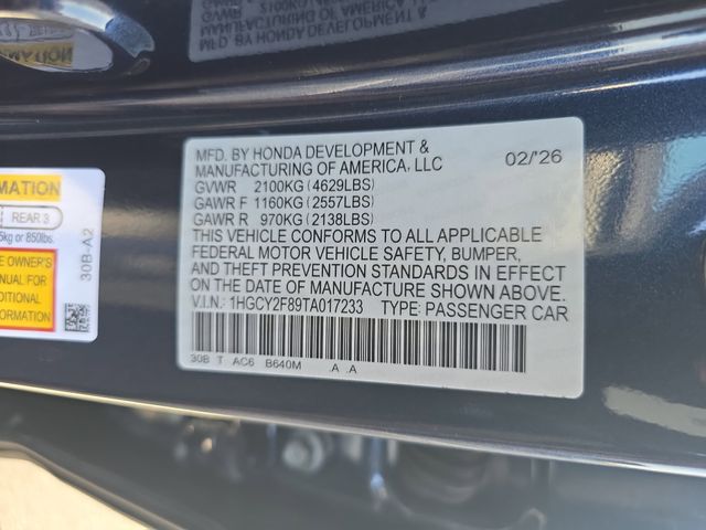 VIN 1HGCY2F89TA017233