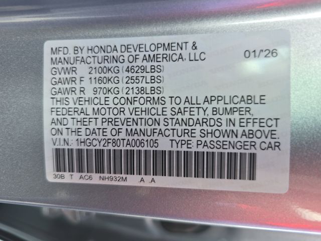VIN 1HGCY2F80TA006105