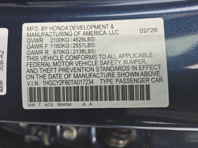 2.0L I4 DOHC 16V, 12 Speakers, 4-Wheel Disc Brakes, ABS brakes, Adaptive Cruise Control: Adaptive Cruise Control (ACC) with Low-Speed Follow, Air Conditioning, Alloy wheels, AM/FM radio, Apple CarPlay/Android Auto, Auto High-beam Headlights, Auto-dimming Rear-View mirror, Automatic temperature control, Blind Spot Information (BSI) System warning, Bose Premium Sound System, Brake assist, Bumpers: body-color, Compass, Delay-off headlights, Driver door bin, Driver vanity mirror, Dual front impact airbags, Dual front side impact airbags, Electronic Stability Control, Emergency communication system: HondaLink, Exterior Parking Camera Rear, Four wheel independent suspension, Front anti-roll bar, Front Bucket Seats, Front Center Armrest, Front dual zone A/C, Front reading lights, Fully automatic headlights, Heads-Up Display, Heated and Ventilated Front Bucket Seats, Heated door mirrors, Heated front seats, Heated rear seats, Heated steering wheel, Illuminated entry, Knee airbag, Lane departure: Lane Keeping Assist System (LKAS) active, Leather Shift Knob, Leather steering wheel, Leather-Trimmed Seat Trim, Low tire pressure warning, Memory seat, Navigation System, Occupant sensing airbag, Outside temperature display, Overhead airbag, Overhead console, Panic alarm, Passenger door bin, Passenger vanity mirror, Power door mirrors, Power driver seat, Power moonroof, Power passenger seat, Power steering, Power windows, Radio data system, Rain sensing wipers, Rear anti-roll bar, Rear reading lights, Rear seat center armrest, Rear side impact airbag, Rear window defroster, Remote keyless entry, Security system, Speed control, Speed-sensing steering, Speed-Sensitive Wipers, Split folding rear seat, Steering wheel mounted audio controls, Telescoping steering wheel, Tilt steering wheel, Traction control, Trip computer, Turn signal indicator mirrors, Variably intermittent wipers, Ventilated front seats, Wheels: 19" x 8.5J Berlina Black, 2.0L I4 DOHC 16V.