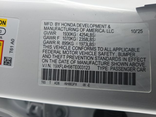 Platinum White Pearl 2026 Honda Civic Hybrid Sport Touring FWD eCVT 2.0L I4 DOHC 16V
