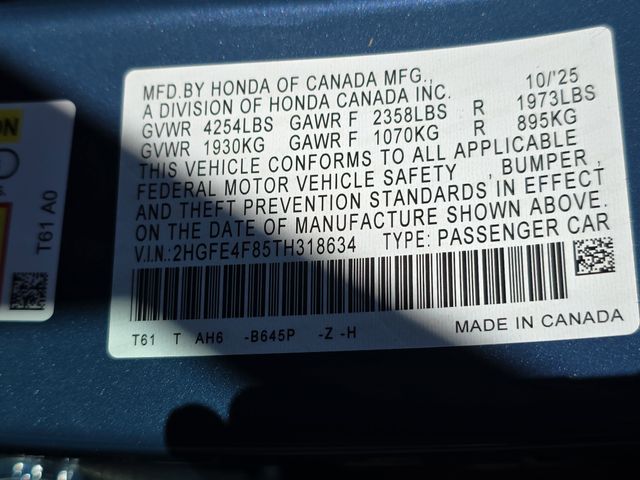 Blue Lagoon Pearl 2026 Honda Civic Hybrid Sport Touring FWD eCVT 2.0L 16V DOHC