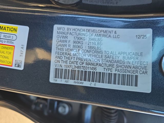 Meteorite Gray Metallic 2026 Honda Civic Sport FWD CVT 2.0L I4 DOHC 16V