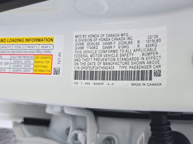 Platinum White Pearl 2026 Honda Civic LX FWD CVT 2.0L I4 DOHC 16V