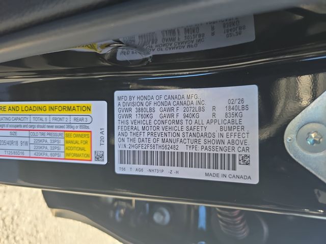 VIN 2HGFE2F58TH562482