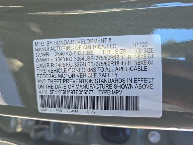 4-Wheel Disc Brakes, 9 Speakers, ABS brakes, Adaptive Cruise Control: Adaptive Cruise Control (ACC) with Low-Speed Follow, Air Conditioning, Alloy wheels, Apple CarPlay/Android Auto, Auto High-beam Headlights, Auto-dimming Rear-View mirror, Automatic temperature control, Blind Spot Information (BSI) System warning, Brake assist, Compass, Delay-off headlights, Driver door bin, Driver vanity mirror, Driver's Seat Mounted Armrest, Dual front impact airbags, Dual front side impact airbags, Durable Leatherette and Cloth Seat Trim, Electronic Stability Control, Emergency communication system: HondaLink, Exterior Parking Camera Rear, Four wheel independent suspension, Front anti-roll bar, Front Bucket Seats, Front Center Armrest, Front dual zone A/C, Front fog lights, Front reading lights, Fully automatic headlights, Heated door mirrors, Heated Front Bucket Seats, Heated front seats, HVAC memory, Illuminated entry, Knee airbag, Lane departure: Lane Keeping Assist System (LKAS) active, Leather steering wheel, Low tire pressure warning, Memory seat, Navigation system: Google Maps, Occupant sensing airbag, Outside temperature display, Overhead airbag, Overhead console, Panic alarm, Passenger door bin, Passenger seat mounted armrest, Passenger vanity mirror, Power door mirrors, Power driver seat, Power Liftgate, Power moonroof, Power passenger seat, Power steering, Power windows, Radio data system, Radio: Audio System with 9 Speakers, Rear air conditioning, Rear anti-roll bar, Rear reading lights, Rear seat center armrest, Rear window defroster, Rear window wiper, Remote keyless entry, Security system, Speed control, Speed-sensing steering, Split folding rear seat, Spoiler, Steering wheel mounted audio controls, Tachometer, Telescoping steering wheel, Tilt steering wheel, Traction control, Trip computer, Turn signal indicator mirrors, Variably intermittent wipers, Wheels: 18" Matte Shark Grey Alloy.