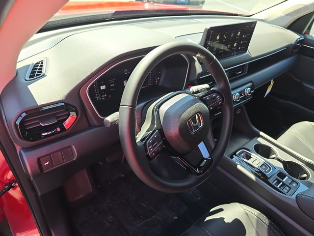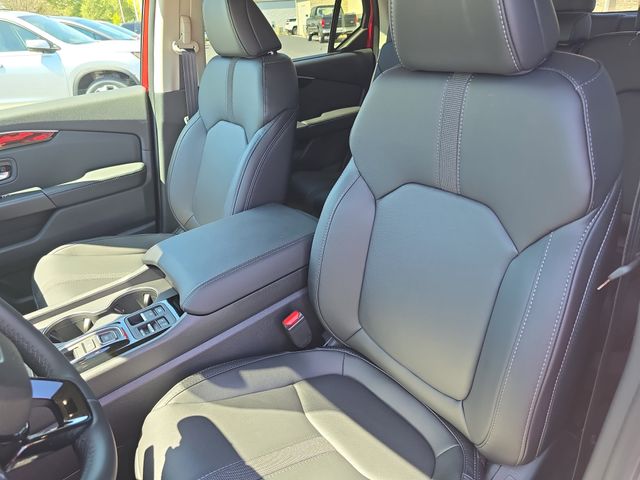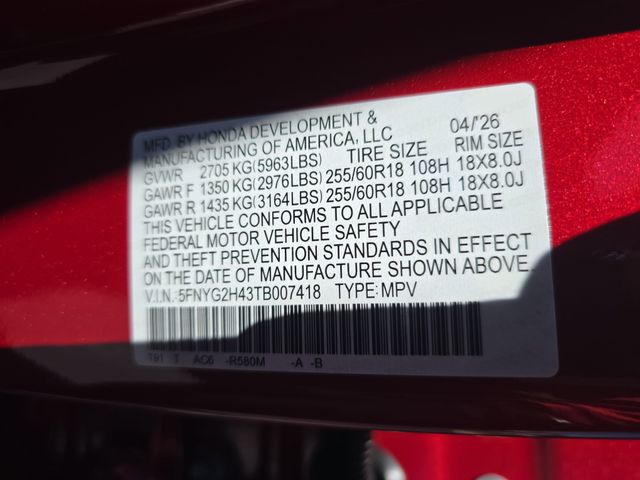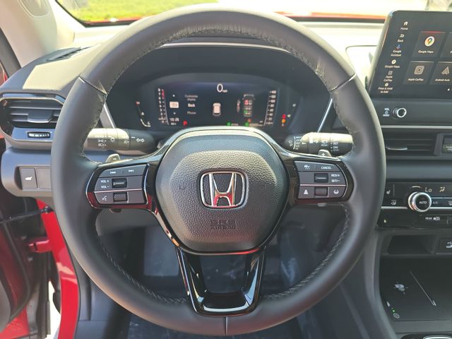 3rd row seats: split-bench, 4-Wheel Disc Brakes, 9 Speakers, ABS brakes, Adaptive Cruise Control: Adaptive Cruise Control (ACC) with Low-Speed Follow, Air Conditioning, Alloy wheels, Apple CarPlay/Android Auto, Auto High-beam Headlights, Auto-dimming Rear-View mirror, Automatic temperature control, Blind Spot Information (BSI) System warning, Brake assist, Bumpers: body-color, Compass, Delay-off headlights, Driver door bin, Driver vanity mirror, Dual front impact airbags, Dual front side impact airbags, Electronic Stability Control, Emergency communication system: HondaLink, Exterior Parking Camera Rear, Four wheel independent suspension, Front anti-roll bar, Front Bucket Seats, Front Center Armrest, Front dual zone A/C, Front fog lights, Front reading lights, Fully automatic headlights, Heated door mirrors, Heated Front Bucket Seats, Heated front seats, HondaLink, HondaLink Subscription Services, Illuminated entry, Knee airbag, Lane departure: Lane Keeping Assist System (LKAS) active, Leather-Trimmed Seat Trim with Fabric Accent, Low tire pressure warning, Memory seat, Navigation system: Google Maps, Occupant sensing airbag, Outside temperature display, Overhead airbag, Overhead console, Panic alarm, Passenger door bin, Passenger vanity mirror, Power door mirrors, Power driver seat, Power Liftgate, Power passenger seat, Power steering, Power windows, Radio data system, Radio: 245-Watt Audio System, Rear air conditioning, Rear anti-roll bar, Rear reading lights, Rear seat center armrest, Rear window defroster, Rear window wiper, Reclining 3rd row seat, Remote keyless entry, Security system, Speed control, Speed-sensing steering, Speed-Sensitive Wipers, Split folding rear seat, Spoiler, Steering wheel mounted audio controls, Tachometer, Telescoping steering wheel, Tilt steering wheel, Traction control, Trip computer, Turn signal indicator mirrors, Variably intermittent wipers, Wheels: 18" Pewter Gray Machined Face.