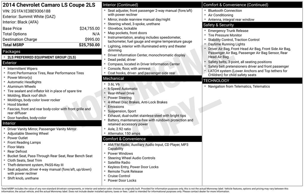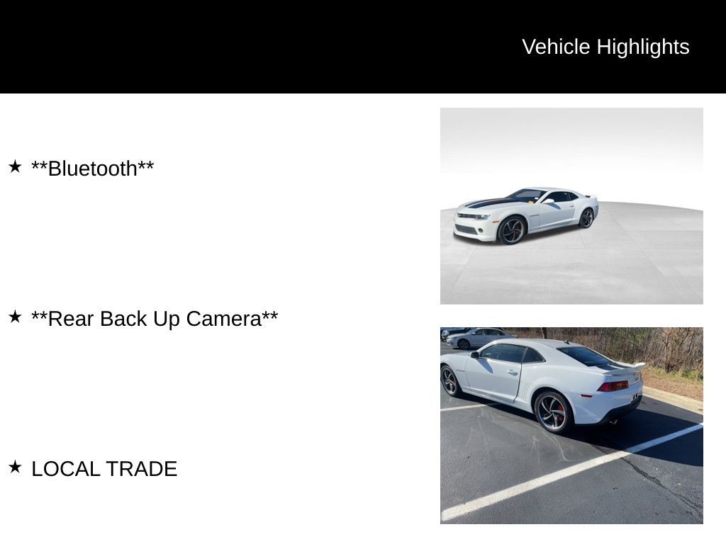 Summit White 2014 Chevrolet Camaro 2LS 2D Coupe RWD 3.6L V6 DGI DOHC VVT 6-Speed Automatic with TapShift