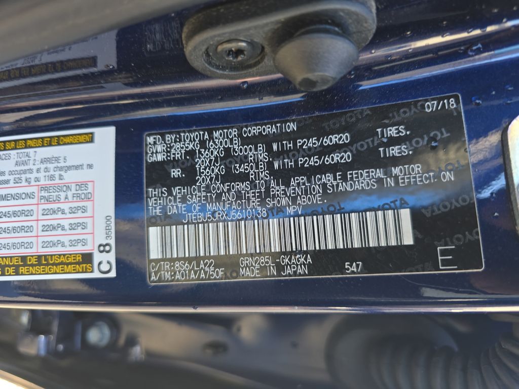 4WD, Black Graphite w/Leather Seat Trim, 15 Speakers, 20" x 7.5" Unique Dual 6-Spoke Alloy Wheels, 3.727 Axle Ratio, 4-Wheel Disc Brakes, ABS brakes, Air Conditioning, Alloy wheels, AM/FM radio: SiriusXM, Anti-whiplash front head restraints, Auto-Dimming Rear-View Mirror, Auto-dimming Rear-View mirror, Automatic temperature control, Body Color Heated Mirrors, Brake assist, Bumpers: body-color, CD player, Compass, Delay-off headlights, Driver door bin, Driver vanity mirror, Dual front impact airbags, Dual front side impact airbags, Electronic Stability Control, Emergency communication system: Safety Connect, Exterior Parking Camera Rear, Front anti-roll bar, Front Bucket Seats, Front Center Armrest, Front dual zone A/C, Front fog lights, Front reading lights, Front wheel independent suspension, Fully automatic headlights, Garage Door Opener, Garage door transmitter: HomeLink, Heated door mirrors, Heated front seats, Heated/Ventilated Front Bucket Seats, Illuminated entry, Knee airbag, Leather Seat Trim, Leather Shift Knob, Low tire pressure warning, Memory seat, Moonroof w/Tilt Up & Slide, Navigation System, Occupant sensing airbag, Outside temperature display, Overhead airbag, Overhead console, Panic alarm, Passenger door bin, Passenger vanity mirror, Power door mirrors, Power driver seat, Power moonroof, Power passenger seat, Power steering, Power windows, Radio: Entune Premium JBL Audio w/Navigation, Rear anti-roll bar, Rear seat center armrest, Rear window defroster, Rear window wiper, Remote keyless entry, Right & Left Individual Air Conditioner, Roof rack: rails only, Security system, Speed control, Speed-sensing steering, Split folding rear seat, Spoiler, Steering wheel mounted audio controls, Tachometer, Telescoping steering wheel, Tilt steering wheel, Traction control, Trip computer, Turn signal indicator mirrors, Variably intermittent wipers, Ventilated front seats, 4WD, Black Graphite w/Leather Seat Trim.