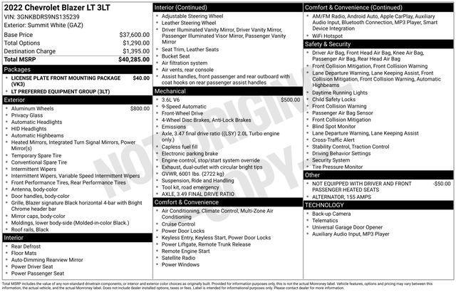 Summit White 2022 Chevrolet Blazer LT 4D Sport Utility FWD 3.6L V6 SIDI 9-Speed Automatic with Overdrive
