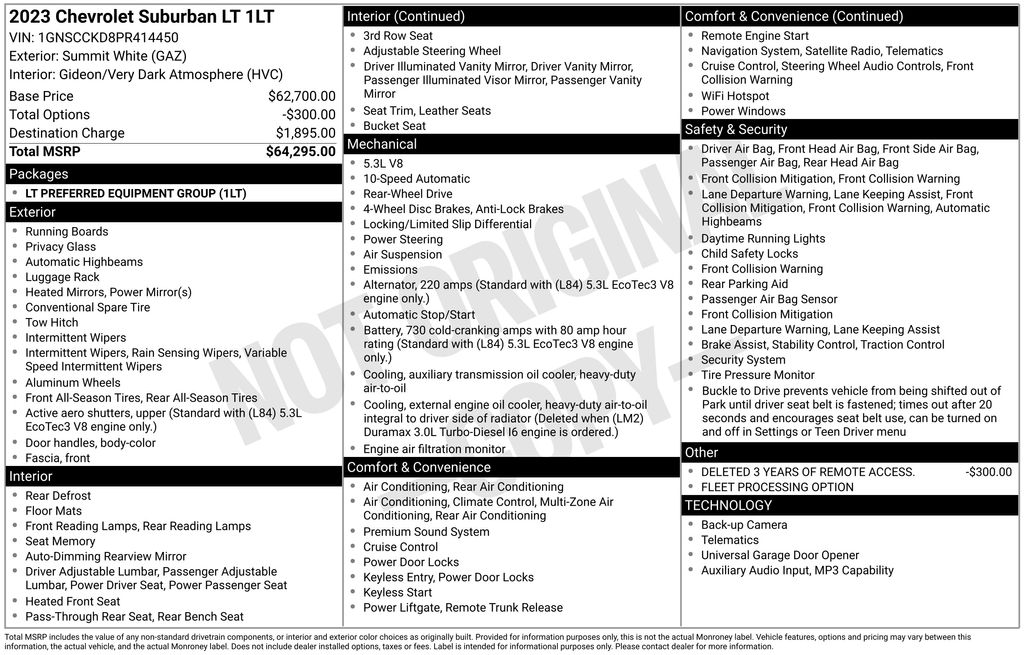 Summit White 2023 Chevrolet Suburban LT 4D Sport Utility RWD EcoTec3 5.3L V8 10-Speed Automatic with Overdrive