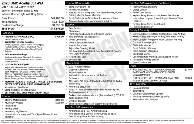 Sterling Metallic 2023 GMC Acadia SLT 4D Sport Utility FWD 2.0L Turbocharged 9-Speed Automatic