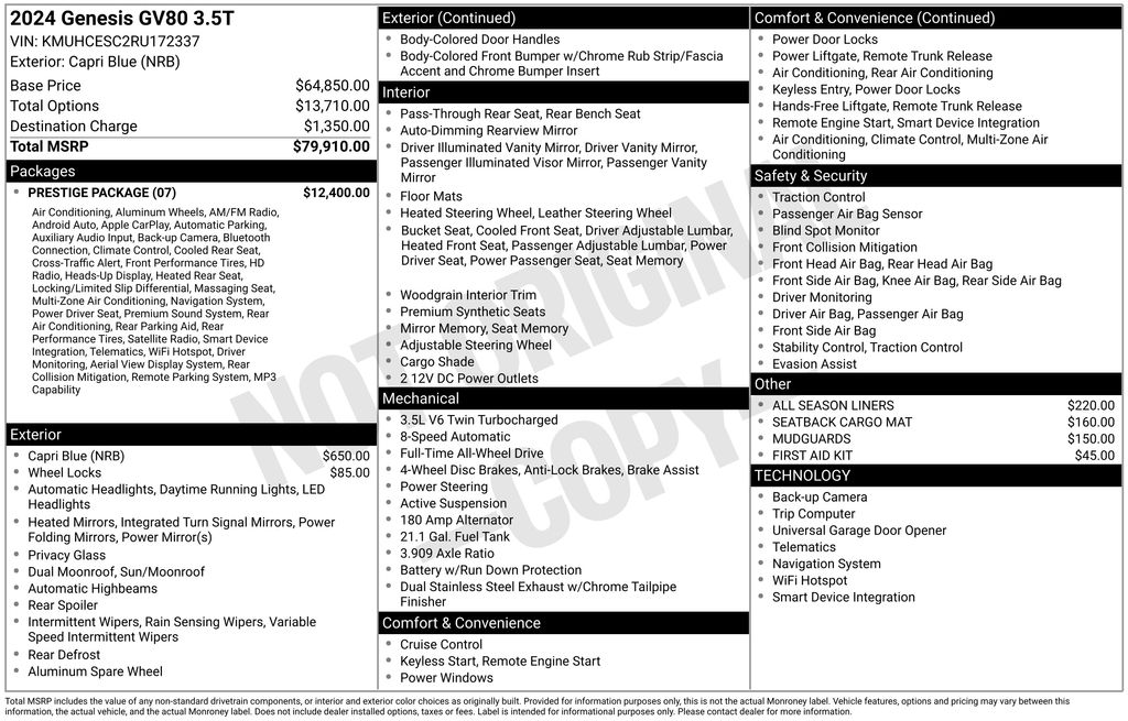 2024 Genesis GV80 3.5T Prestige Signature 4D Sport Utility AWD 3.5L DOHC 8-Speed Automatic