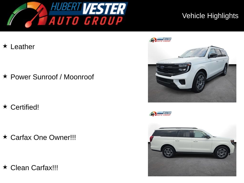 Leather, Power Sunroof / Moonroof, Certified!, Carfax One Owner!!!, Clean Carfax!!!, Vester Certified Pre-Owned Certified, 110V/400W AC Power Outlet, 26mm Engine Radiator, 2nd Row Power-Folding 40/20/40 ActiveX Bench Seat, 2nd Row Power-Folding Captain's Chairs, 3.73 Axle Ratio, 360-Degree Zone Lighting, 3rd Row Flexible Seating, 3rd row seats: split-bench, 3rd Row Vinyl Seats, 4-Door Intelligent Access (Lock/Unlock), 4-Wheel Disc Brakes, 6 Speakers, ABS brakes, ActiveX Front Heated Captain's Chairs, Air Conditioning, Alloy wheels, AM/FM radio: SiriusXM with 360L, Apple CarPlay/Android Auto, Auto High-beam Headlights, Auto-dimming Rear-View mirror, Automatic temperature control, BlueCruise Equipped, Brake assist, Bumpers: body-color, Cloth Front Captain's Chairs, Compass, Delay-off headlights, Driver door bin, Driver State Detection, Driver vanity mirror, Dual front impact airbags, Dual front side impact airbags, Electronic Stability Control, Emergency communication system: 911 Assist, Equipment Group 202A High Package, Exterior Parking Camera Rear, Flex Powered Console, Ford Split Gate, Four wheel independent suspension, Front anti-roll bar, Front Bucket Seats, Front Center Armrest, Front dual zone A/C, Front reading lights, Front Side Laminated Glass, Fully automatic headlights, Heated door mirrors, Heated Steering Wheel, Heavy-Duty Trailer Tow, Illuminated entry, Integrated Trailer Brake Control, Intersection Assist, Low tire pressure warning, Memory Driver Seat, Navigation System, Occupant sensing airbag, Outside temperature display, Overhead airbag, Overhead console, Panic alarm, Passenger door bin, Passenger vanity mirror, Power door mirrors, Power driver seat, Power Panoramic Vista Roof w/Power Sunshade, Power passenger seat, Power steering, Power Tilt/Telescopic Steering Wheel w/Memory, Power windows, Power-Folding Sideview Mirrors w/Autofold, Radio data system, Radio: AM/FM Stereo w/MP3 Capable, Rain Sensing Wipers, Rear air conditioning, Rear anti-roll bar, Rear reading lights, Rear window defroster, Rear window wiper, Reclining 3rd row seat, Remote keyless entry, SecuriCode Keyless Entry Keypad, Security system, SiriusXM w/360L, Speed control, Speed-sensing steering, Speed-Sensitive Wipers, Split folding rear seat, Spoiler, Steering wheel mounted audio controls, Tachometer, Telescoping steering wheel, Tilt steering wheel, Traction control, Trip computer, Universal Garage Door Opener, USB Ports, Variably intermittent wipers, Voltmeter, Wheels: 18" Dark Alloy Painted Aluminum, Wheels: 20" Carbonized Gray Bright Machined Aluminum, Wireless Charging Pad.