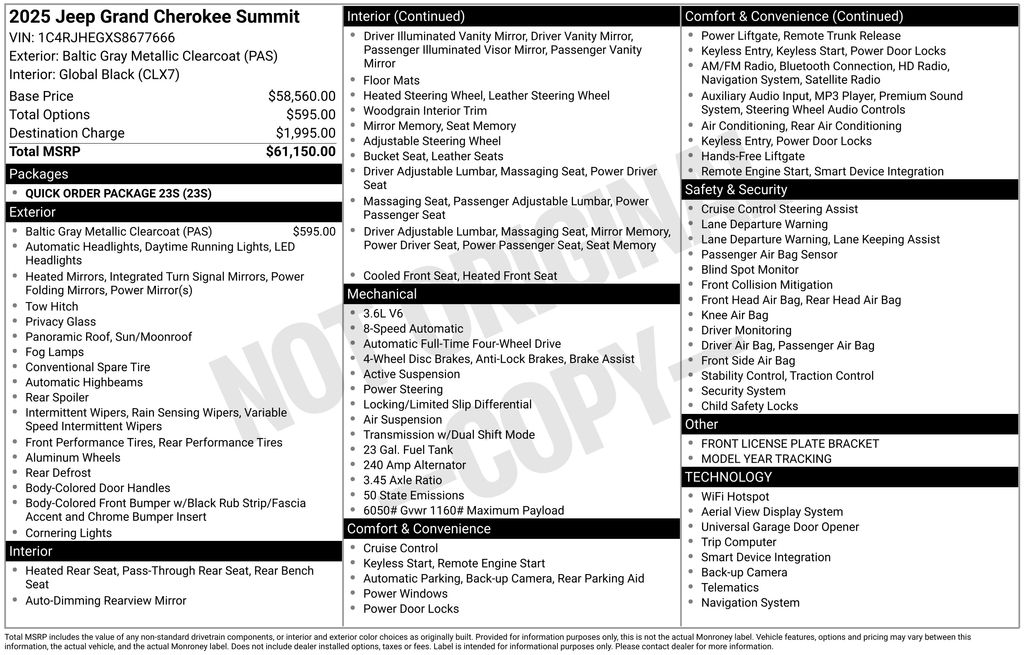 Baltic Gray Metallic Clearcoat 2025 Jeep Grand Cherokee Summit 4D Sport Utility 4WD 3.6L V6 24V VVT 8-Speed Automatic